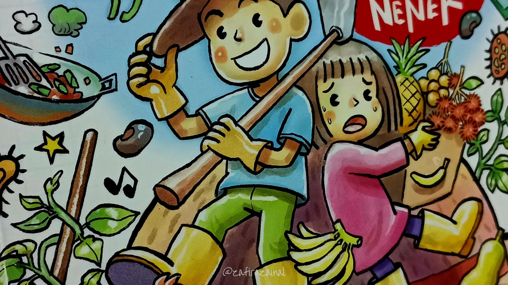 Komik ini mengisahkan dua orang kanak-kanak yang pulang ke kampung apabila ibu bapa mereka bertugas di luar negara. Di kampung, mereka melakukan kegiatan berkebun bersama-sama nenek mereka. Bagi saya, kandungan komik ini menarik walaupun kisahnya dekat dengan kisah-kisah kebanyakan kita yang pulang ke rumah datuk dan nenek serta meluangkan masa bersama-sama.